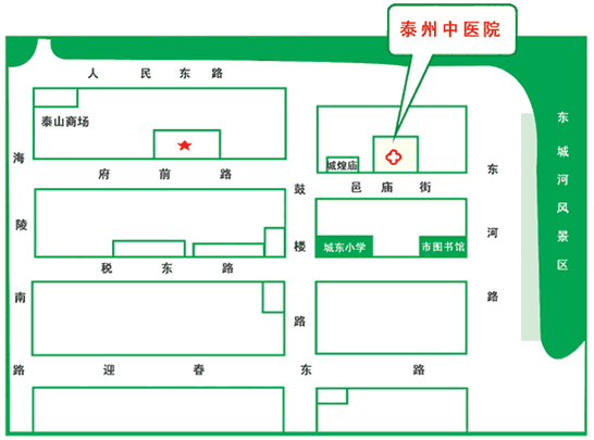 乘坐公交車(chē)的朋友可以乘坐市區(qū)的10路、26路、28路公交車(chē)來(lái)我院就診,在公交站臺(tái)下車(chē)后,從市區(qū)新會(huì)賓樓(海陵區(qū)政府旁)對(duì)面的道路向東步行進(jìn)入邑廟街約3分鐘即可到達(dá)中醫(yī)院西院區(qū)。