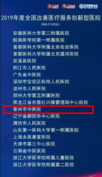 近日,由國家衛(wèi)生健康委醫(yī)政醫(yī)管局、人民網(wǎng)主辦的“2019 中國醫(yī)院院長改善醫(yī)療服務(wù)論壇”在安徽合肥舉行,論壇主題為“改善醫(yī)療服務(wù)——我們?cè)谛袆?dòng)、我們共分享”,同期為2019年全國改善醫(yī)療服務(wù)典型舉辦了授牌儀式,泰州市中醫(yī)院從高手如林的評(píng)選活動(dòng)中脫穎而出,上榜本次活動(dòng)評(píng)選的“全國改善醫(yī)療服務(wù)創(chuàng)新型醫(yī)院”名單。據(jù)悉,今年全國僅有20家醫(yī)院入選“2019年度全國改善醫(yī)療服務(wù)創(chuàng)新型醫(yī)院”。