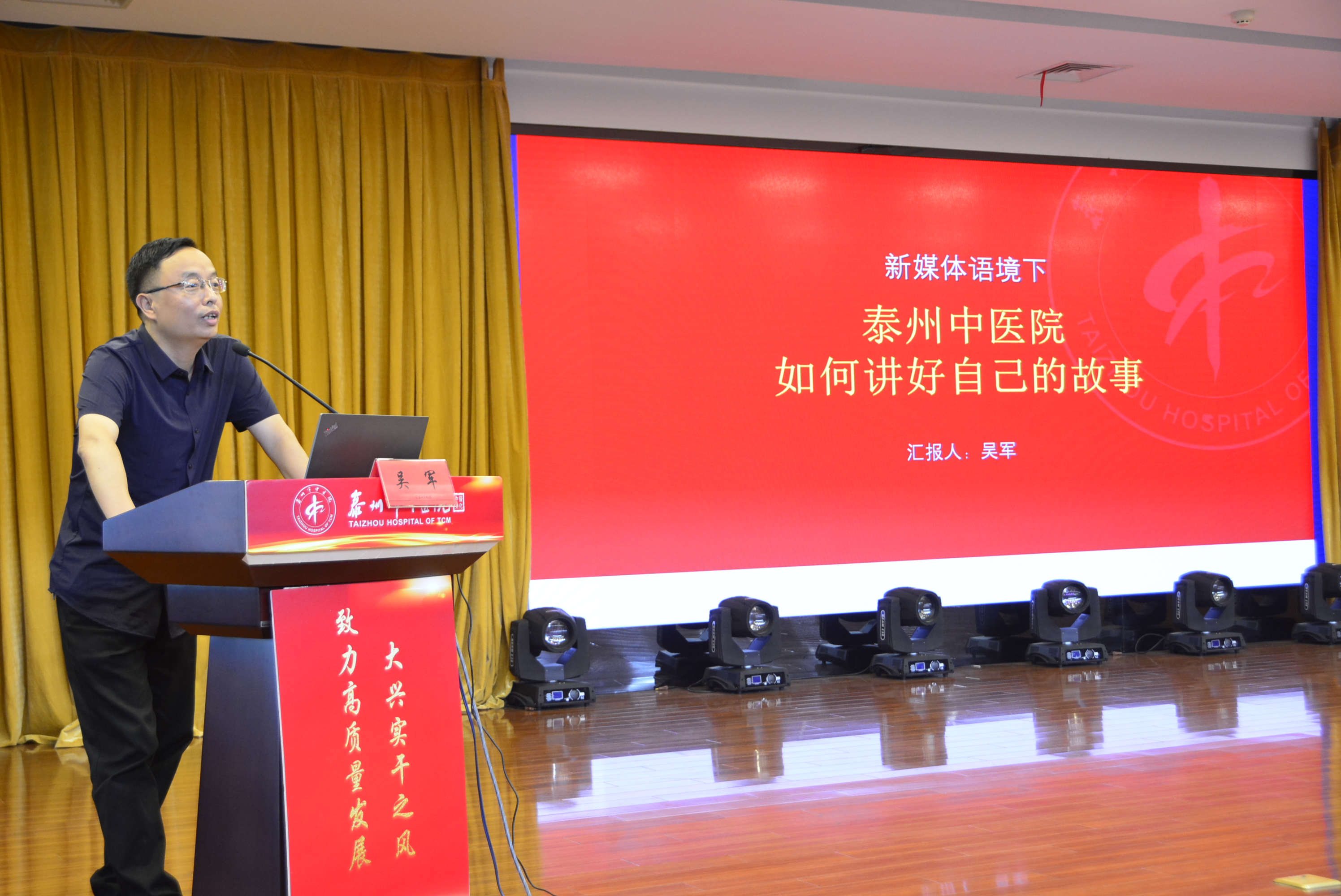 6月11日,泰州市中醫(yī)院2020年通訊員培訓(xùn)活動(dòng)在東院會(huì)議中心召開(kāi)。我院特邀中國(guó)中醫(yī)藥報(bào)社首席記者柴玉、泰州電視臺(tái)新媒體中心副主任吳軍、泰州日?qǐng)?bào)資深記者顧俊前來(lái)授課。泰州市中醫(yī)院黨委書(shū)記、院長(zhǎng)王華,省市媒體單位代表,醫(yī)院各黨支部書(shū)記以及來(lái)自臨床各科室,各黨支部宣傳委員、中醫(yī)藥文化宣傳教育基地講解員等近兩百名通訊員參加此次培訓(xùn)。院黨委副書(shū)記孫曉軍主持會(huì)議。