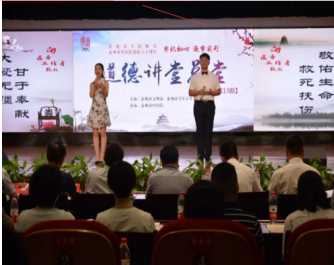 道德總堂衛(wèi)計委專場活動共分為看短片、作自省、唱歌曲、音詩畫、誦經(jīng)典、講故事、談感悟、送吉祥8個環(huán)節(jié)。今年8月19日為首個“中國醫(yī)師節(jié)”,本期道德講堂總堂以“牢記初心,逐夢前行”為活動主題。通過讓醫(yī)護人員成為思想道德建設(shè)主體,“身邊人講身邊事、身邊人講自己事、身邊事教身邊人”的一種形式,從而來推動新時期的醫(yī)德醫(yī)風(fēng),不斷提高醫(yī)護人員的思想道德修養(yǎng)和文明素質(zhì),讓人民群眾更加滿意!
