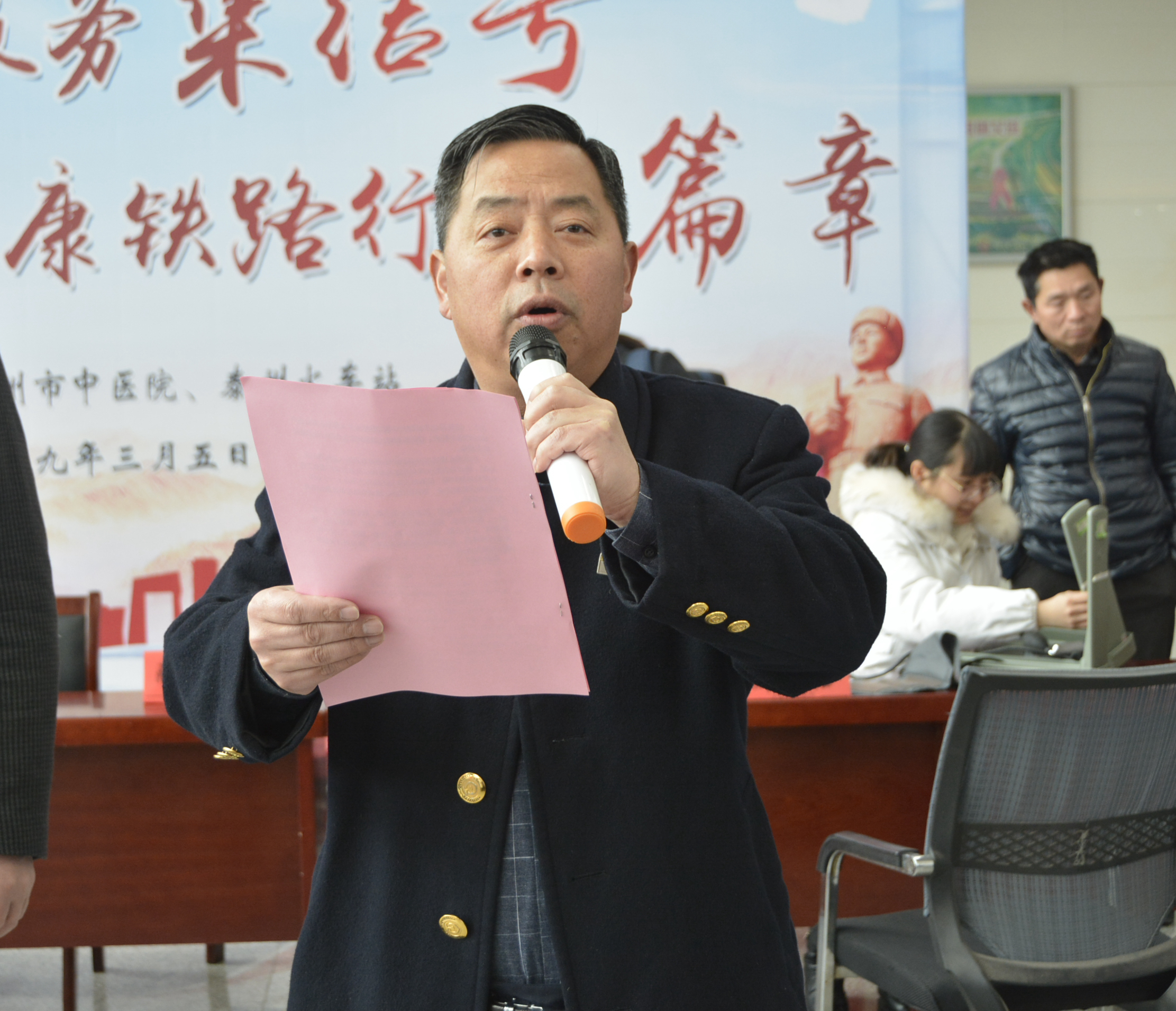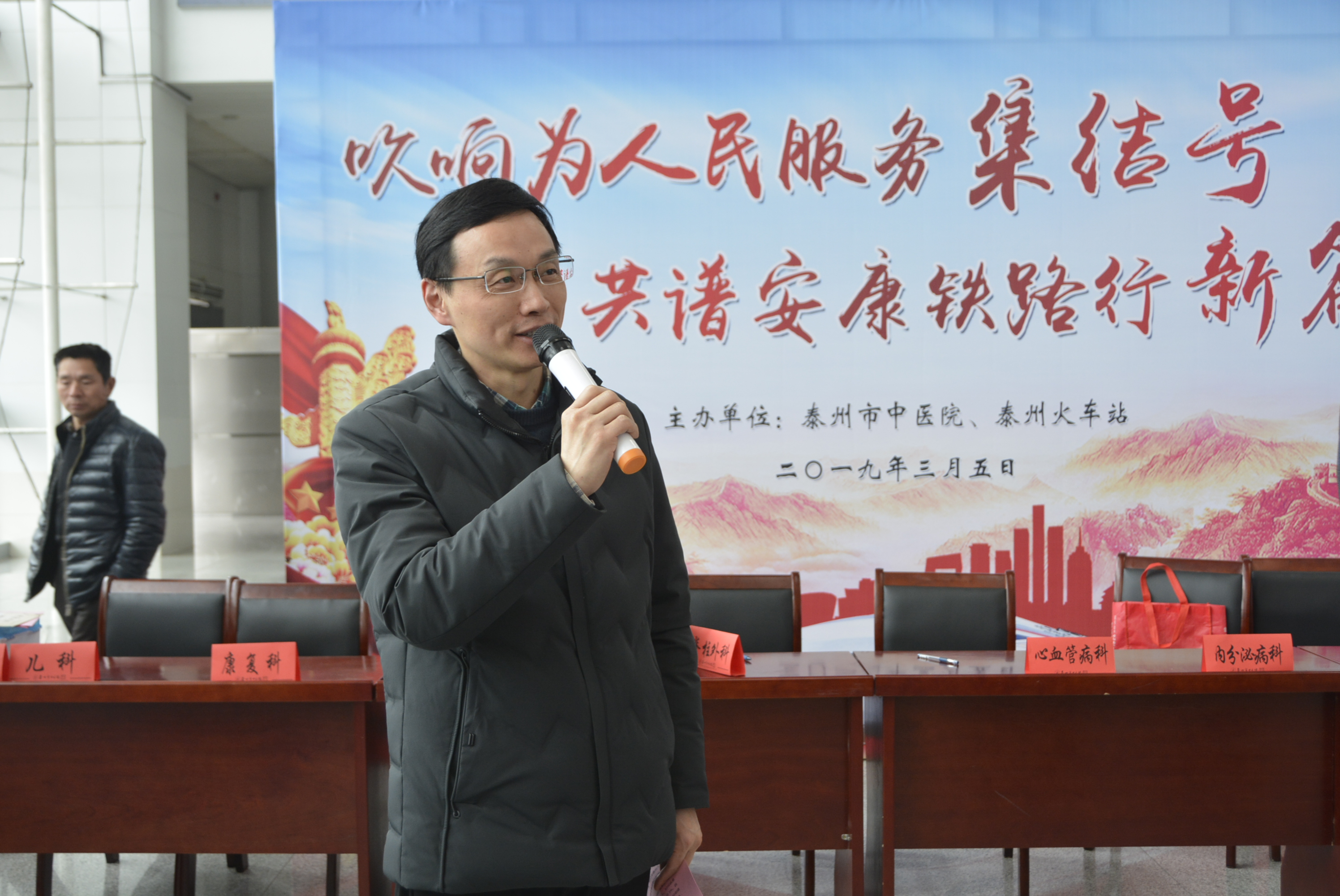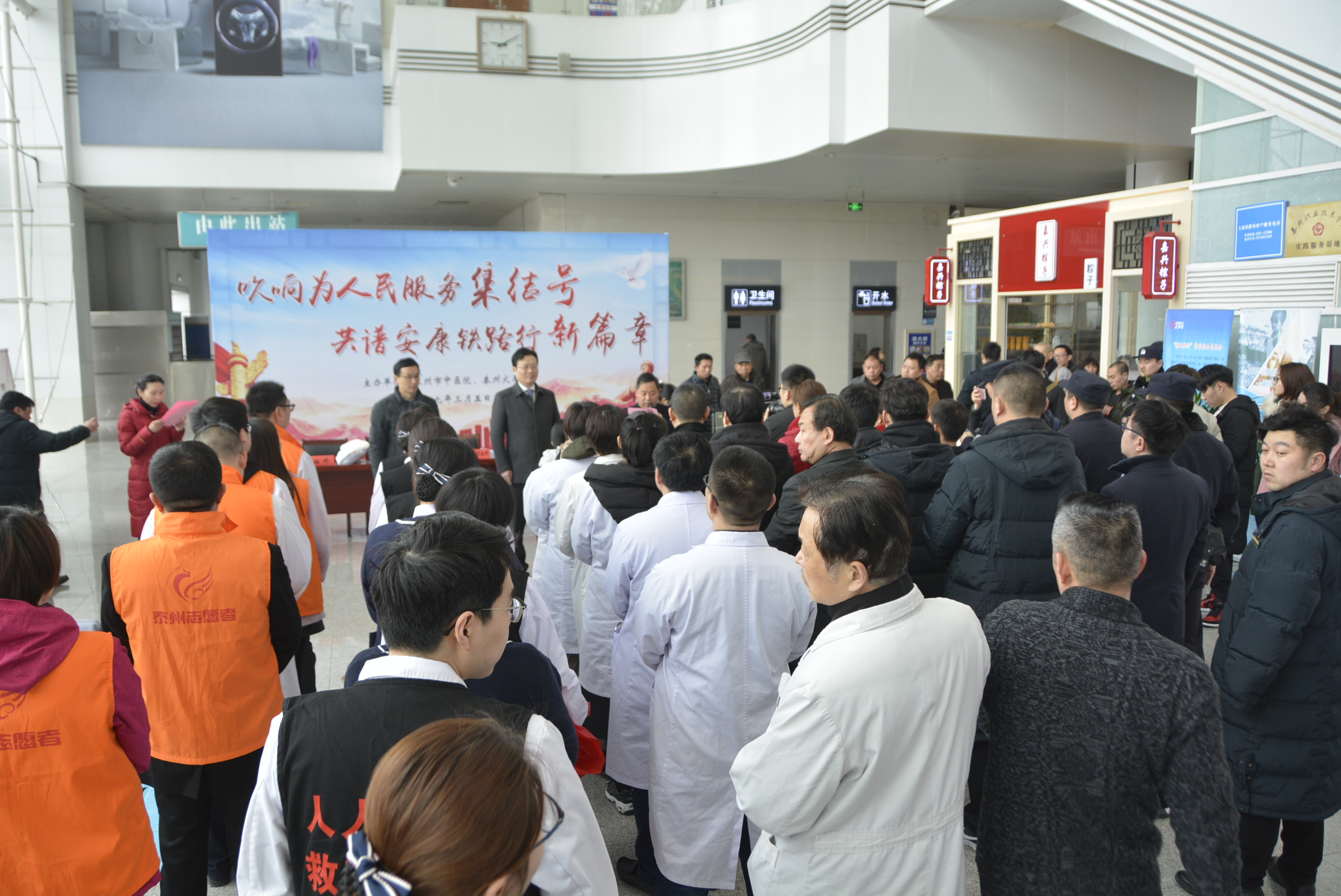 3月5日上午,泰州市中醫(yī)院聯(lián)合泰州市火車站共同舉辦“吹響為人民服務集結(jié)號、共譜安康鐵路行新篇章”為主題的“3.5學雷鋒日”活動。泰州市中醫(yī)院黨委書記、院長王華,黨委副書記孫曉軍,泰州市火車站黨總支書記羅躍華、泰州市火車站站長楊偉民等出席本次活動。