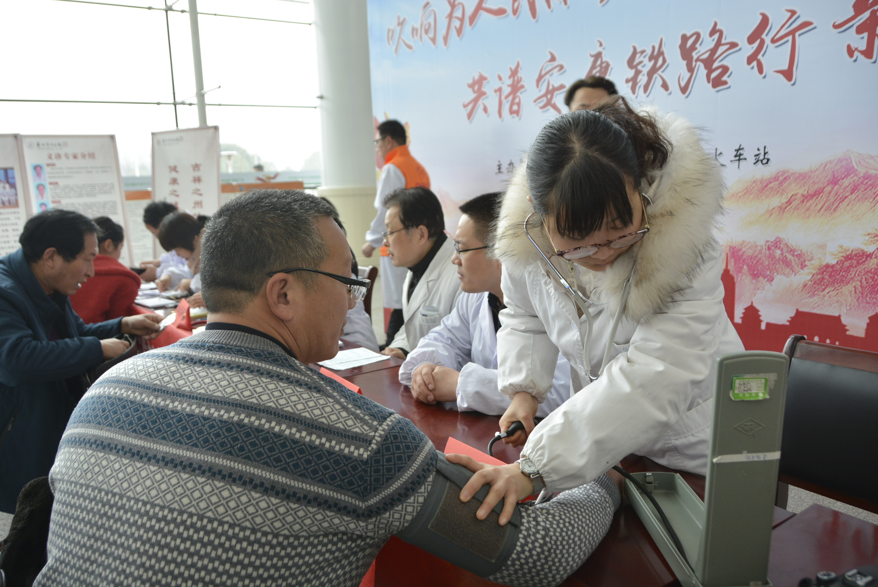 我院骨傷科、腦病科、婦產(chǎn)科、兒科、心血管病科、康復科、內(nèi)分泌病科等多個科室參與到此次義診當中,專家團隊熱情為旅客免費義診,免費測量血糖及血壓,根據(jù)問診旅客的身體狀況,細心告知保健知識及日常注意事項。