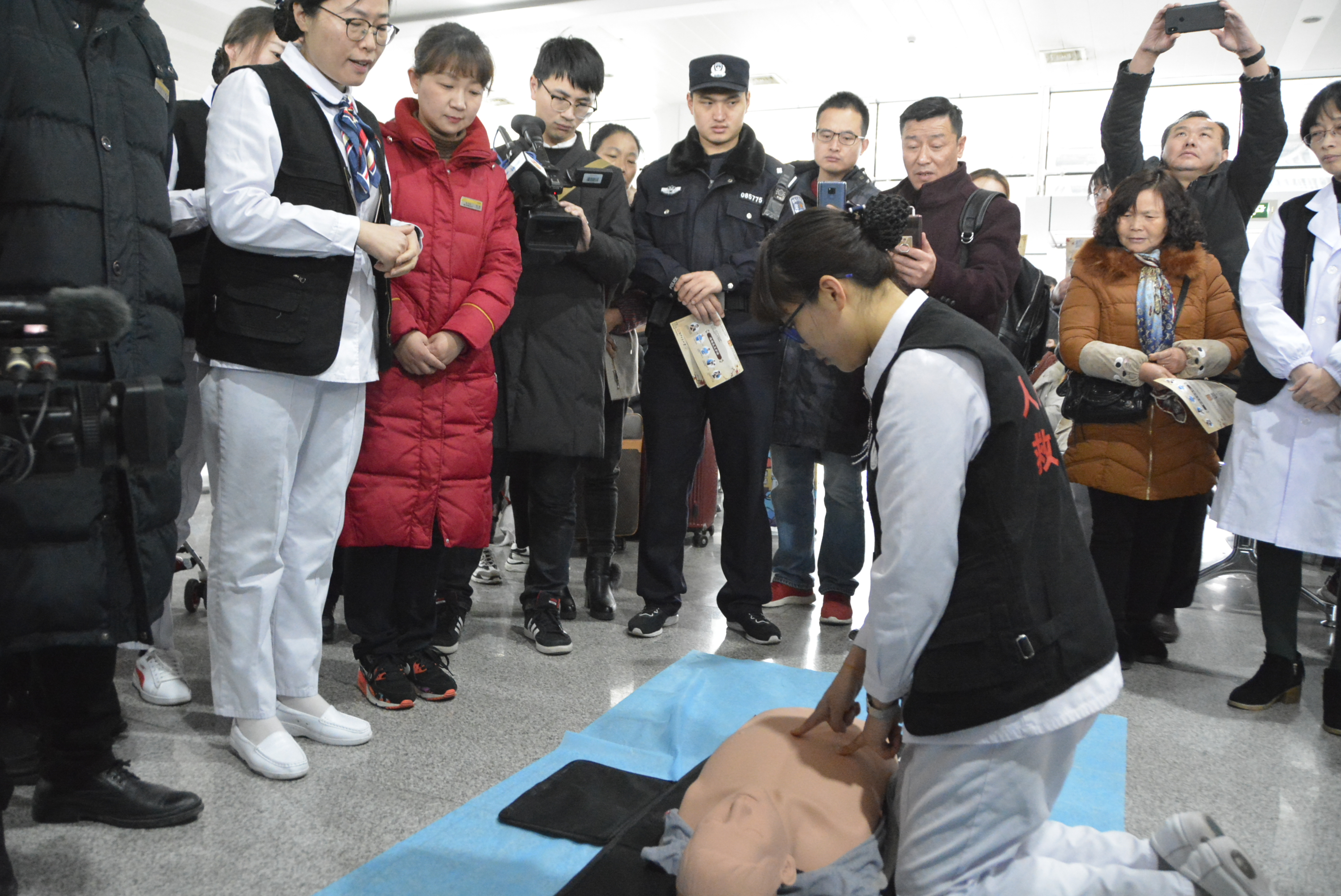 泰州市中醫(yī)院黨委副書記孫曉軍在講話中表示今天我們與火車站共同發(fā)起急救知識與技能培訓公益活動,旨在踐行“生命至上、安全第一”的指導思想,增強列車乘務人員、車站工作人員的安全意識和救護技能,為旅客提供更加優(yōu)質(zhì)的應急救護服務,切實保護旅客的健康和生命安全。接下來,我們還將與火車站共同開展“五個一健康服務”,即:開展一期急救公益課、組建一支急救志愿者隊伍、建立一條綠色急救通道、開展一次應急救助演練、開展一系列應急救助志愿者服務。堅決確保旅客安全萬無一失,促進平安鐵路、安康鐵路建設。為推進泰州市精神文明建設,實現(xiàn)全市高質(zhì)量跨越發(fā)展,建設美好幸福新泰州而努力奮斗。