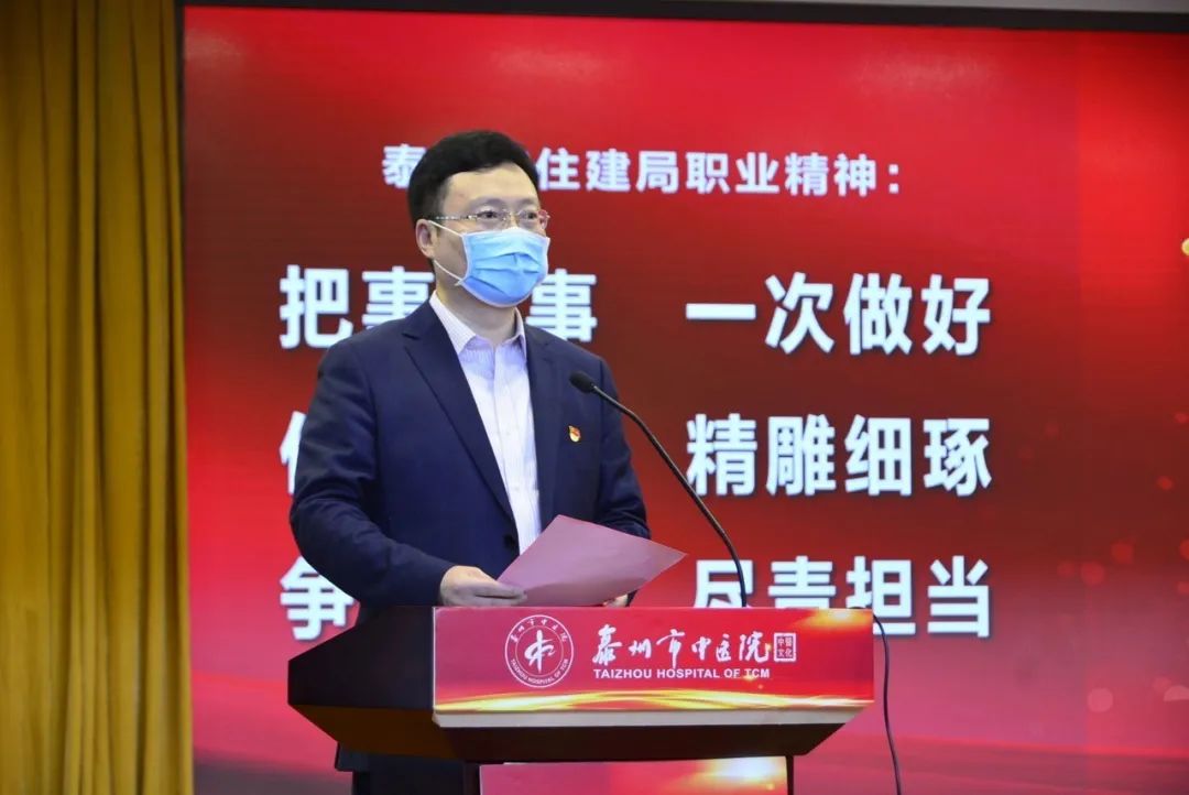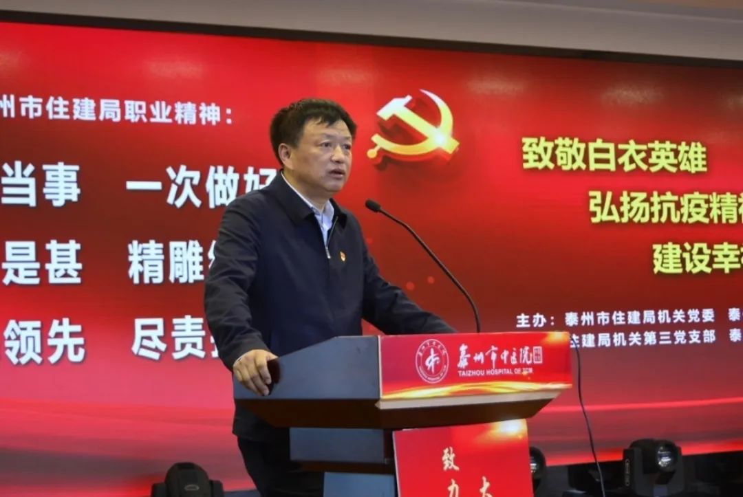 為進(jìn)一步加強(qiáng)規(guī)范化建設(shè),提升支部黨建工作水平,激勵廣大黨員干部積極履職擔(dān)當(dāng)。4月30日上午,泰州市住建局機(jī)關(guān)黨委聯(lián)合泰州市中醫(yī)院黨委開展“致敬白衣英雄 弘揚(yáng)抗疫精神 建設(shè)幸福城市”主題黨日活動。市住建局黨組書記、局長高衛(wèi)東及班子成員;市中醫(yī)院黨委書記、院長王華及班子成員;市住建局和市中醫(yī)院黨員代表參加了此次活動。