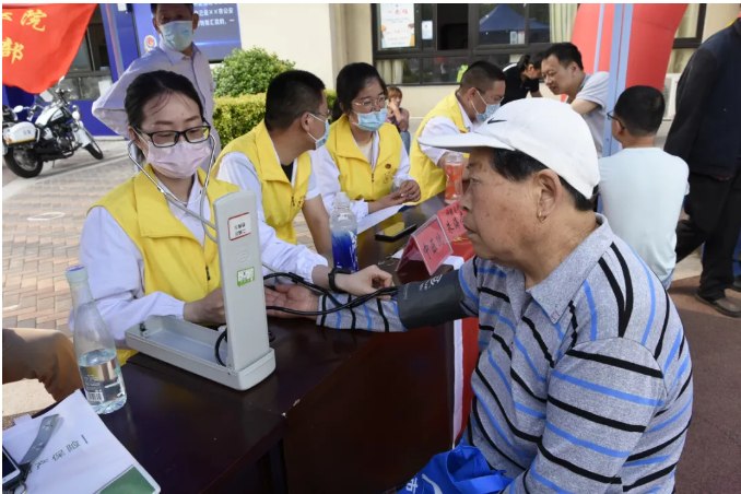 來自泰州市中醫(yī)院軟傷正骨科楊洲、神經(jīng)內(nèi)科朱海榮、婦產(chǎn)科房彩平等組成的黨員志愿者服務(wù)隊現(xiàn)場為居民提供免費(fèi)診療服務(wù)、健康咨詢服務(wù)以及免費(fèi)測量血壓,他們還為現(xiàn)場的老百姓推廣手機(jī)預(yù)約掛號,滿足他們對健康的需求。