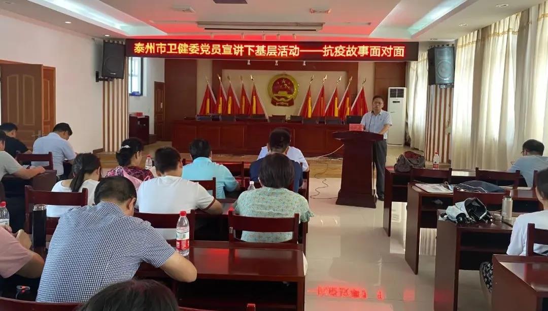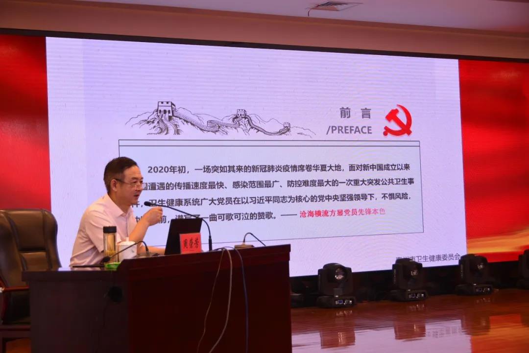泰州市衛(wèi)健委四級(jí)調(diào)研員周榮芳講《滄海橫流方顯黨員先鋒本色》黨課,闡述了在關(guān)鍵時(shí)刻沖得上去、危難關(guān)頭豁得出來(lái)的黨員本色。
