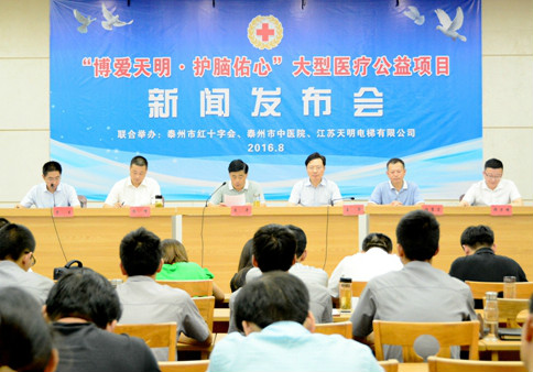 8月3日下午,由泰州市紅十字會、泰州市中醫(yī)院和江蘇天明電梯有限公司共同主辦的“博愛天明·護腦佑心”大型醫(yī)療公益項目新聞發(fā)布會在海陵圖書館召開。