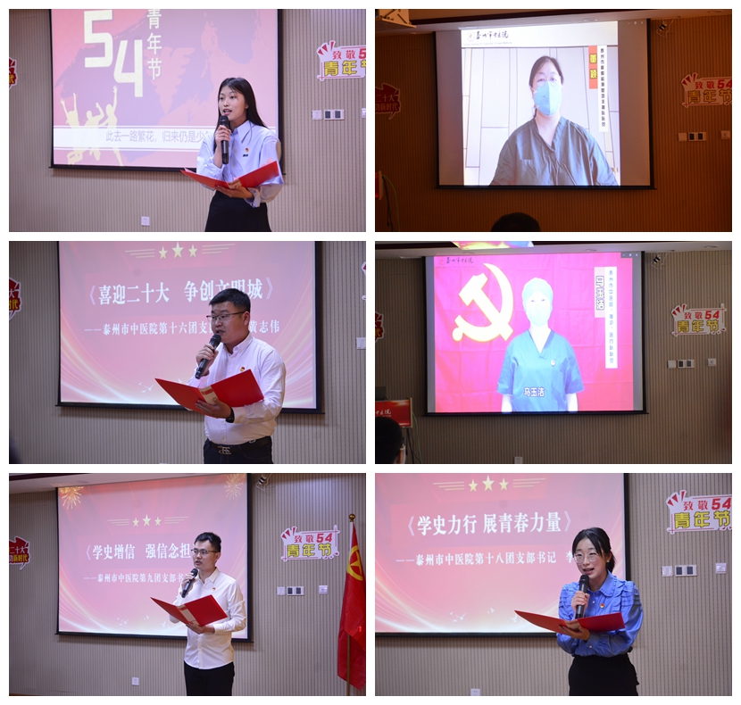 為進(jìn)一步鞏固我院黨史學(xué)習(xí)教育成果,凝聚全院青年用實(shí)踐行動(dòng)繼承和發(fā)揚(yáng)五四運(yùn)動(dòng)“愛國、進(jìn)步、民主、科學(xué)”的精神,積極響應(yīng)市團(tuán)委“戰(zhàn)疫青春”的活動(dòng)號(hào)召,5月4日,在中國共產(chǎn)主義青年團(tuán)成立100周年到來之際,泰州市中醫(yī)院舉辦2022年“五四”青年節(jié)云端朗誦會(huì)。共青團(tuán)泰州市委副書記曹承、泰州市衛(wèi)健委團(tuán)委書記袁超、泰州市中醫(yī)院黨委副書記孫曉軍、泰州市中醫(yī)院副院長殷勇等嘉賓及我院國家級(jí)青年文明號(hào)代表、全國優(yōu)秀共青團(tuán)員、各團(tuán)支部書記、青年醫(yī)務(wù)骨干人員代表等參加本次活動(dòng)。