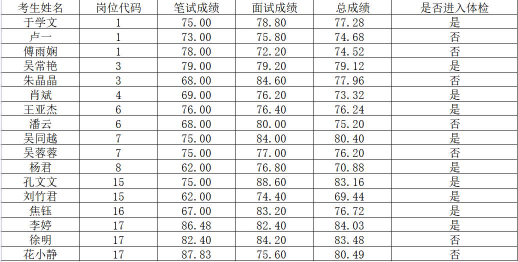 標(biāo)題:泰州市中醫(yī)院2023年公開招聘備案制人員面試成績及進(jìn)入體檢人員名單