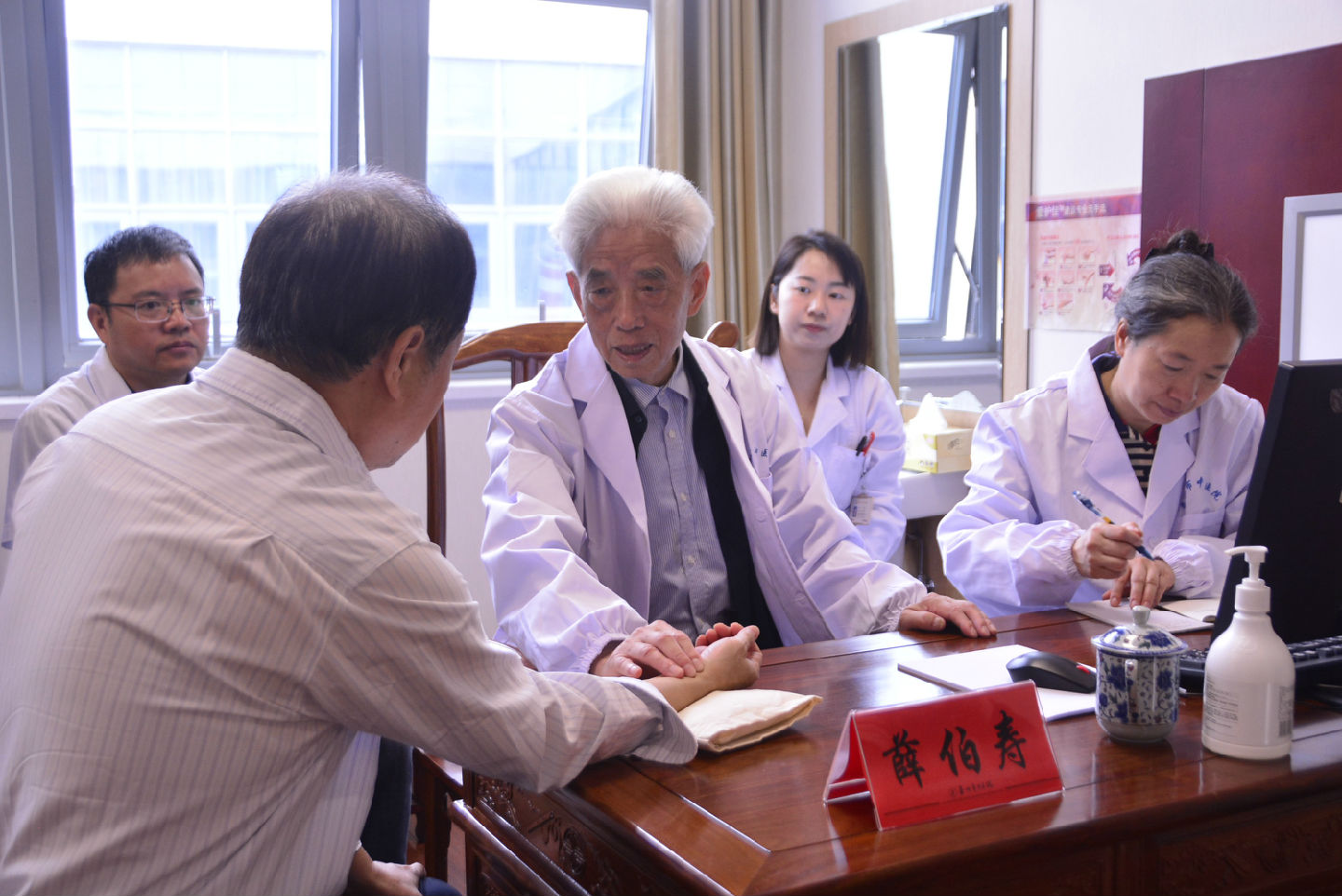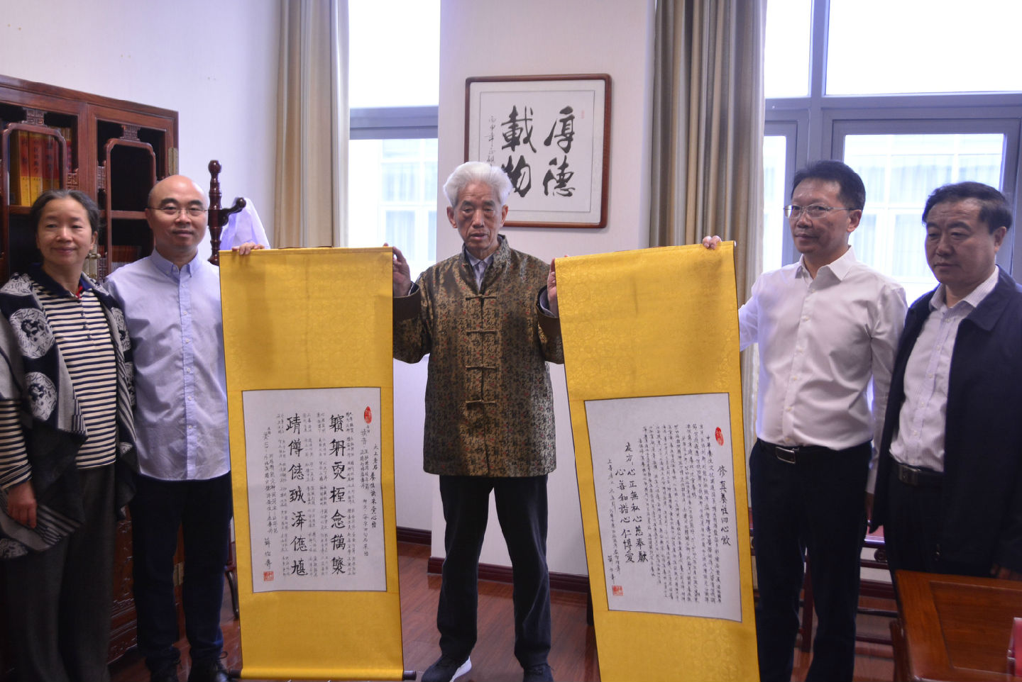 國(guó)醫(yī)大師薛伯壽向我院贈(zèng)送親自撰寫的中醫(yī)文化卷軸