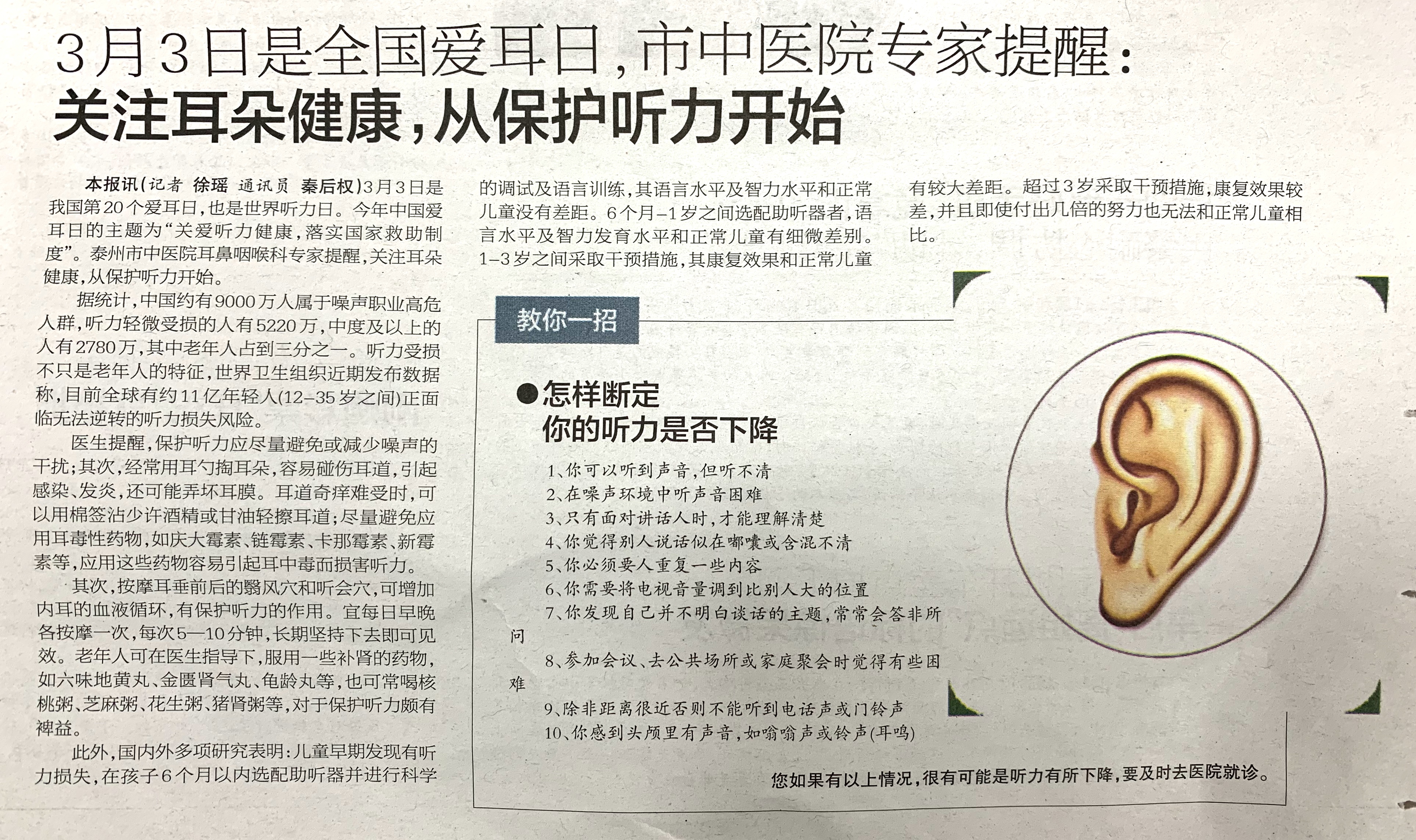3.3 泰州晚報 關(guān)注耳朵健康,從保護(hù)聽力開始