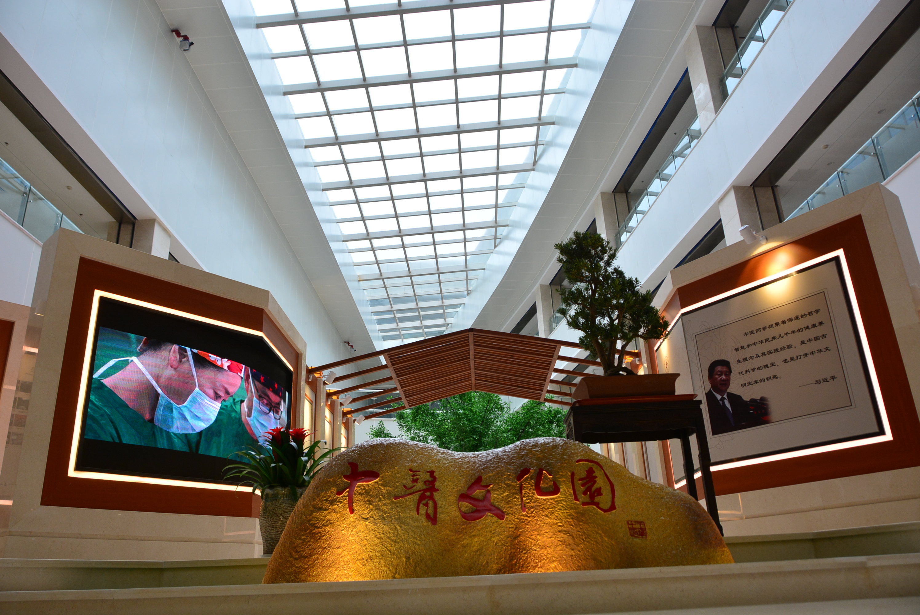 醫(yī)院文化展示區(qū)集中展示了黨建引領(lǐng)醫(yī)院文化建設(shè),包括以弘揚(yáng)新時期醫(yī)務(wù)人員職業(yè)道德為主題的本院醫(yī)務(wù)工作者本色出演的微電影微視頻展播、黨員義工服務(wù)隊、“岐黃惠民,厚植杏林”志愿服務(wù)、“大走訪,大落實”活動、中醫(yī)特色專(學(xué))科建設(shè)、人才培養(yǎng)、名中醫(yī)工作室等。中醫(yī)藥文化園還融入了中式園林之美,小橋流水,體現(xiàn)出現(xiàn)代舒適而不失傳統(tǒng)韻味的優(yōu)美環(huán)境,與醫(yī)院各樓層不同主題中醫(yī)藥文化(七大門派典故,道地中藥材藥性、功效、主治、用法)展示相融合,一起營造出全院濃郁的中醫(yī)藥文化氛圍。中醫(yī)藥文化園采取全天候免費開放管理模式,年接待參觀人員5.6萬余人次。