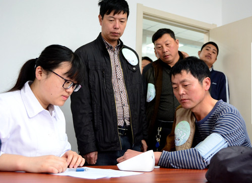 春風送暖,免費做體檢為施工一線的100名農(nóng)民工免費送健康,體檢包括肝、腎功能檢查,胸透、血糖、血脂、尿酸等項目及健康咨詢,篩查農(nóng)民工職業(yè)病患病情況,針對性地對工人易患疾病進行預(yù)防。