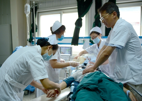與此同時,醫(yī)院急診中心接到求教電話,一名溺水者經(jīng)由120急救車,正在送往醫(yī)院的路上。醫(yī)護人員迅速進入應急狀態(tài),準備好床單元和急救用物,有條不紊地把各種監(jiān)測設備調(diào)至工作狀態(tài)……