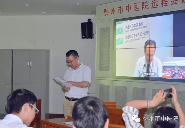 在遠(yuǎn)程會(huì)議中心,通過視頻連線,市中醫(yī)院臨床醫(yī)生們聆聽了諾貝爾獎(jiǎng)獲得者巴里.馬歇爾教授講述他與幽門螺桿菌的故事:《幽門螺桿菌:理論與實(shí)踐》。因?yàn)榘l(fā)現(xiàn)和證明了幽門螺旋桿菌(Helicobacter pylori,Hp)在胃炎和胃潰瘍等疾病中的致病作用,巴里.馬歇爾教授被授予2005年諾貝爾生理或醫(yī)學(xué)獎(jiǎng)。