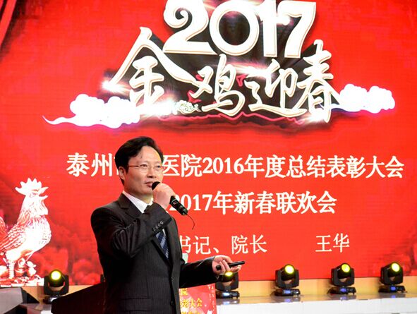 元月14日下午,我院召開2016年度總結表彰大會暨2017年新春聯歡會,全體院領導、科主任、護士長以及受表彰人員蒞臨現場,此外特邀了市衛(wèi)計委中醫(yī)處處長朱云,泰州市中醫(yī)醫(yī)聯體成員單位部分院長一同觀看了演出。