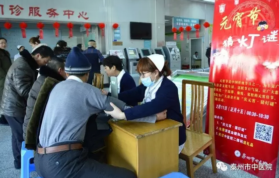 為了讓市民體驗傳統(tǒng)文化和民俗,2月11日元宵節(jié),泰州市中醫(yī)院門診部特別推出了“元宵佳節(jié)猜燈謎”活動。大廳內(nèi)布置上百份燈謎,供市民猜謎,猜謎內(nèi)容都是中醫(yī)藥、健康知識,猜中者都有禮品相送。