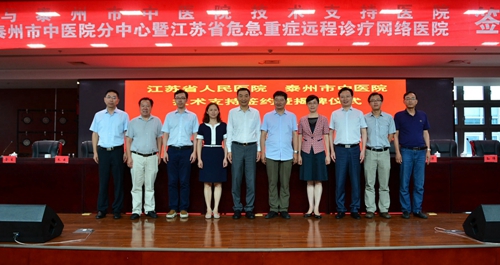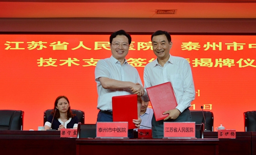 8月11日下午,我院在新院會議中心舉行隆重的簽約、揭牌儀式。江蘇省人民醫(yī)院副院長占伊揚,泰州市中醫(yī)院院長王華共同簽署“江蘇省人民醫(yī)院技術(shù)支持醫(yī)院”、“江蘇省人民醫(yī)院冠心病中心泰州中醫(yī)院分中心”、“江蘇省危重癥遠程診療網(wǎng)絡(luò)醫(yī)院”協(xié)議,同時揭牌。