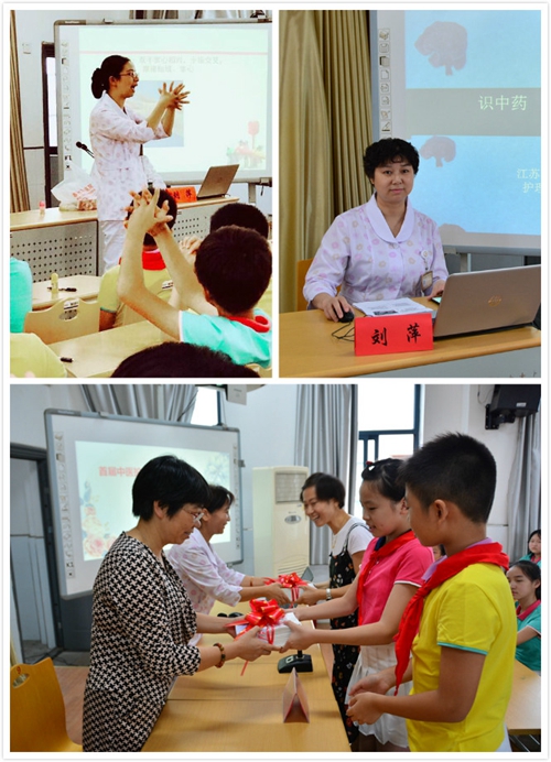 本次活動(dòng)分兩部分:一部分是針對(duì)學(xué)生的課堂,首先由泰州市中醫(yī)院黨辦主任許粉年、護(hù)理部主任助理沈曉紅為學(xué)生代表授書(shū)《中小學(xué)生中醫(yī)藥文化科普讀物》,接著由康復(fù)科護(hù)士長(zhǎng)劉萍、婦兒科科護(hù)士長(zhǎng)嚴(yán)莉講授《識(shí)中藥,小穴位,大健康》、《健康小手操》知識(shí)講座,隨后進(jìn)行趣味識(shí)中藥,中醫(yī)健康小手操,與學(xué)生互動(dòng),場(chǎng)面十分熱鬧,孩子們完全沉浸在祖國(guó)中醫(yī)文化的熏陶中,受到師生們的一致好評(píng)。