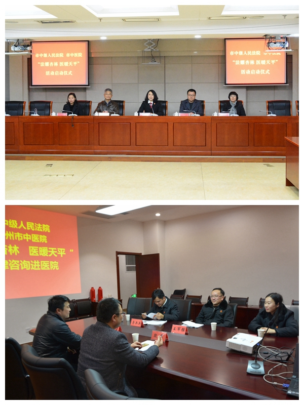 2018年1月5日下午,泰州市中醫(yī)院和泰州市中級(jí)人民法院在市中院審判樓二樓舉行“法耀杏林 醫(yī)暖天平”活動(dòng)啟動(dòng)簽約儀式。活動(dòng)旨在進(jìn)一步幫助泰州市中醫(yī)院提高依法防范和處理醫(yī)療糾紛、涉法問題的能力,提升醫(yī)務(wù)人員的法律素養(yǎng)和依法行醫(yī)的能力。另一方面豐富泰州市中級(jí)人民法院文化建設(shè),健全完善干警保健管理制度,提高干警身體素質(zhì)。