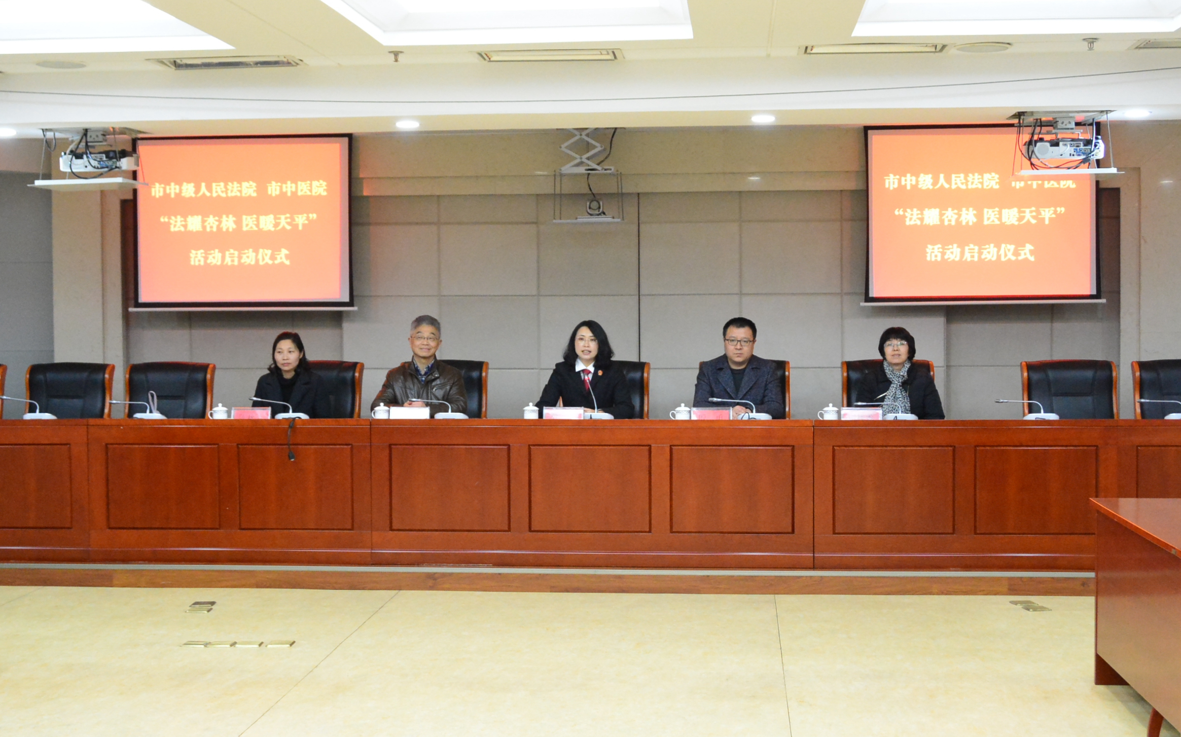 2018年1月5日下午,我院和泰州市中級人民法院在市中院審判樓舉行“法耀杏林,醫(yī)暖天平”活動啟動簽約儀式;活動旨在提高醫(yī)務工作者法律素養(yǎng)、依法防范和處理醫(yī)療糾紛、涉法問題的能力,豐富泰州市中級人民法院文化建設,健全完善干警保健管理制度,提高干警身體素質。