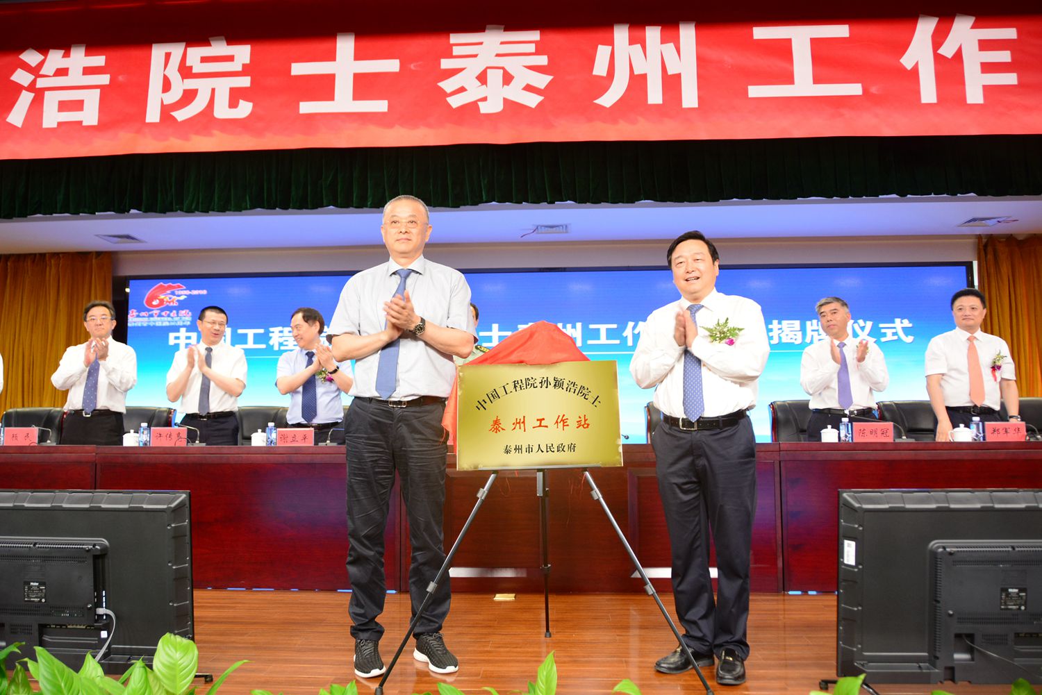 揭牌儀式由泰州市衛(wèi)計委黨委書記、主任徐洪濤主持,王華院長致歡迎詞,孫穎浩院士、陳明冠副市長分別致辭。孫穎浩院士和泰州市政協(xié)主席盧佩民共同為“孫穎浩院士泰州工作站”揭牌 ,孫穎浩院士與王華院長共同簽署合作協(xié)議。