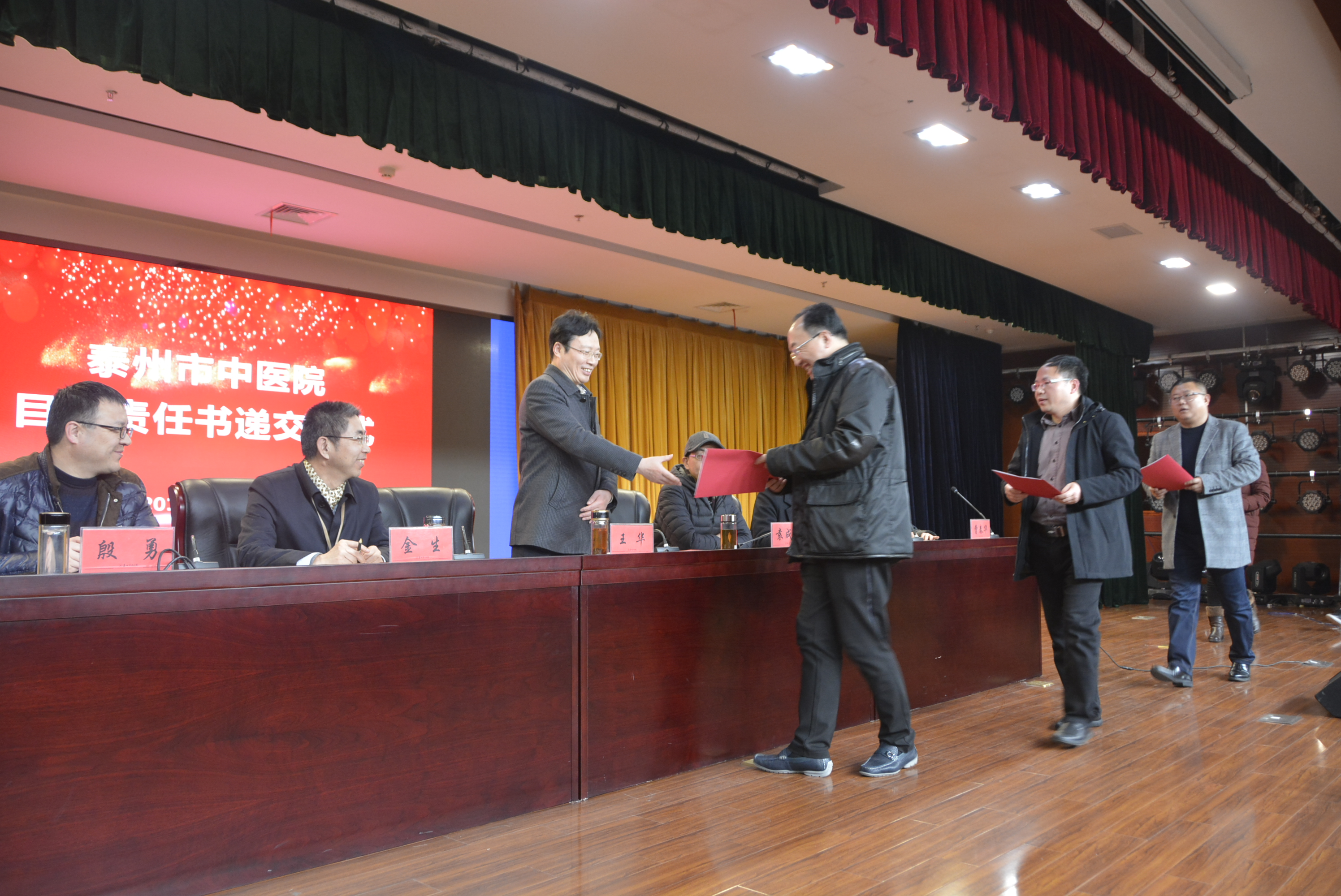 會議開始后,首先由各相關(guān)職能科室負(fù)責(zé)人對2018年的各項效率效益指標(biāo)考核情況進(jìn)行通報。隨后,各臨床醫(yī)技、職能科室負(fù)責(zé)人遞交2018年度綜合目標(biāo)責(zé)任書。各科室負(fù)責(zé)人表示將以時不我待,只爭朝夕的精神狀態(tài),立足崗位本職,做一名負(fù)重奮進(jìn),敢為人先的合格中醫(yī)醫(yī)院人和勇于擔(dān)當(dāng)?shù)闹袑庸歉?,為中醫(yī)院的發(fā)展和中醫(yī)藥事業(yè)的振興,不忘初心,繼續(xù)前行。