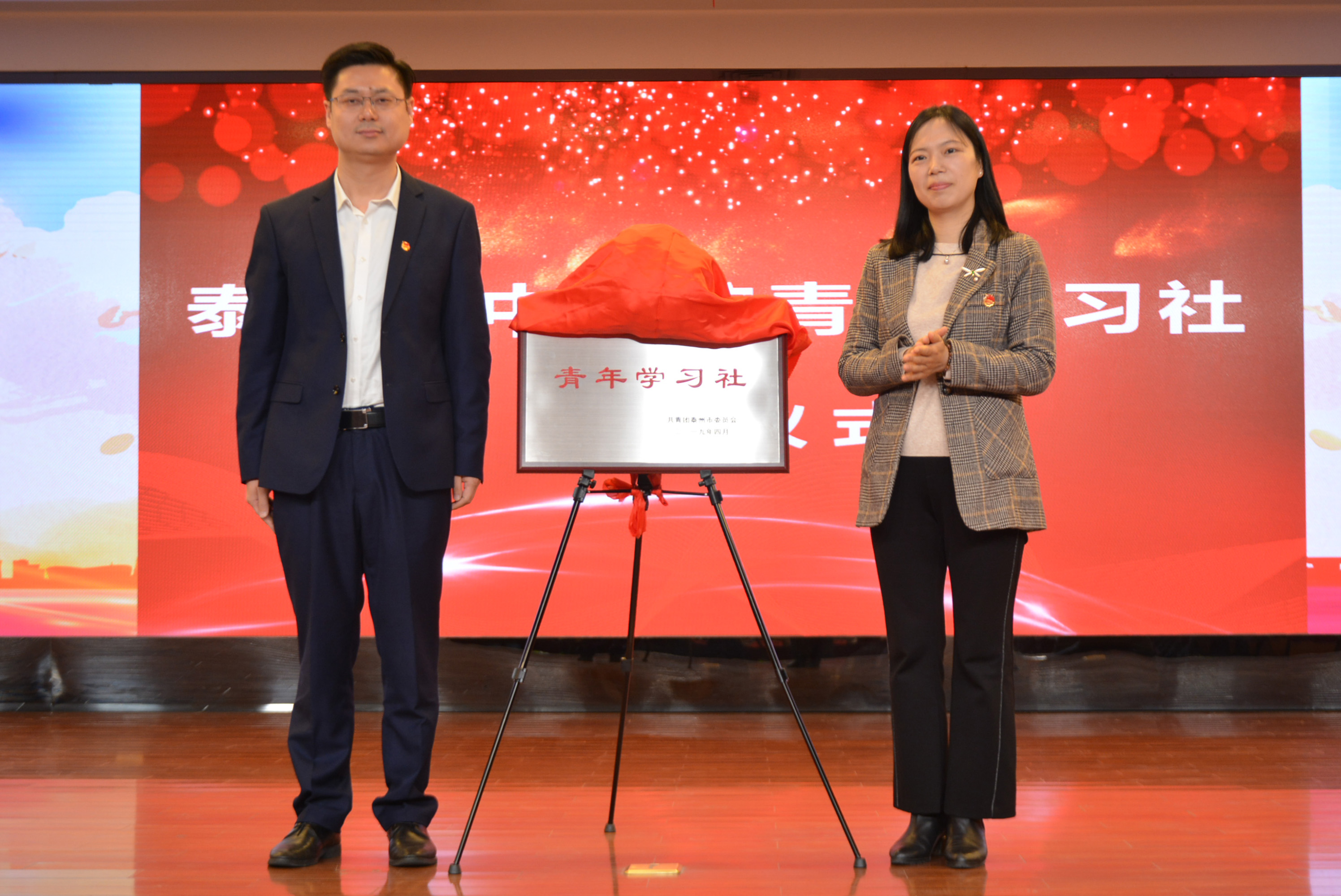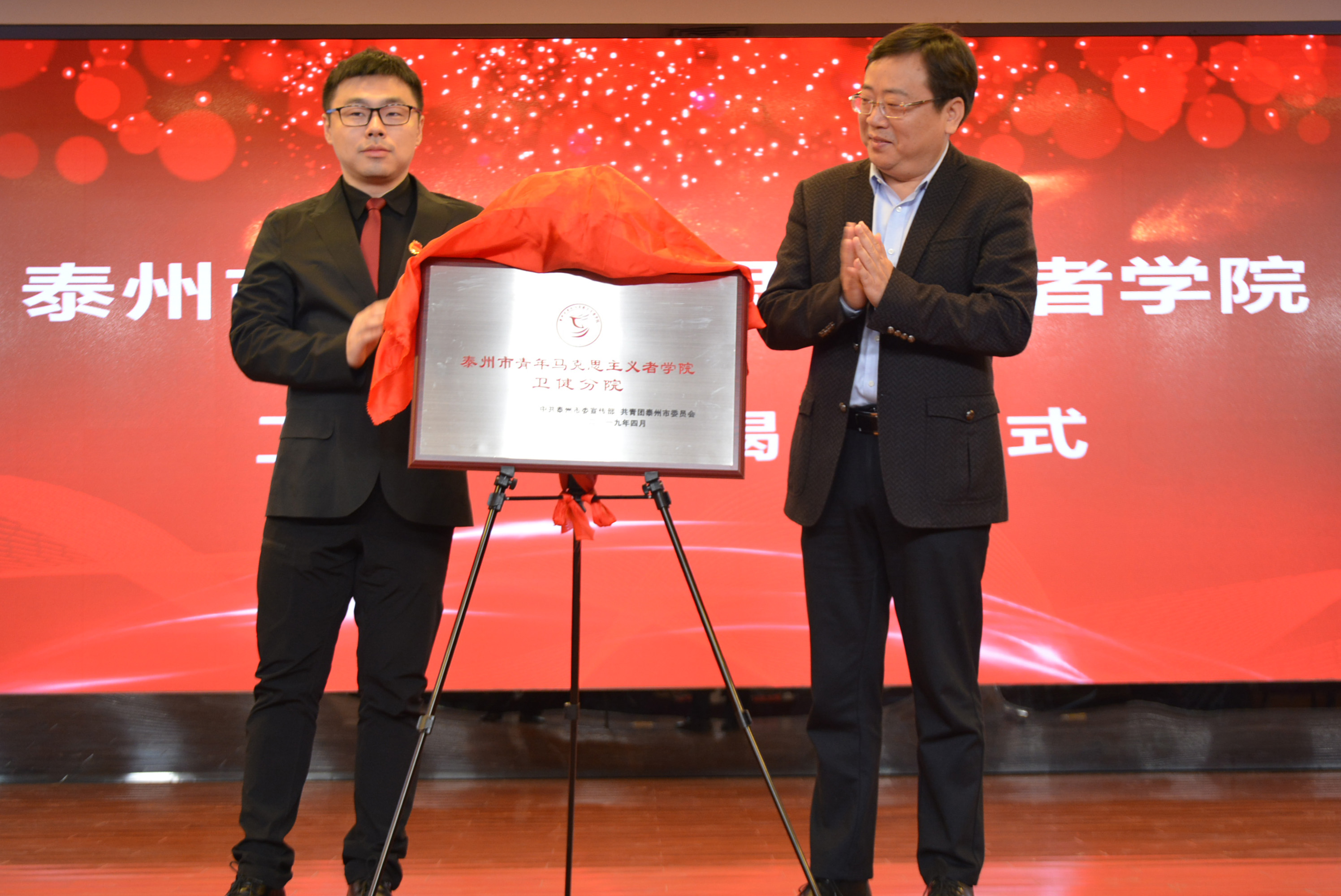 共青團泰州市委書記殷俊、南京中醫(yī)藥大學團委副書記時孝春為泰州市中醫(yī)院青年學習社揭牌。