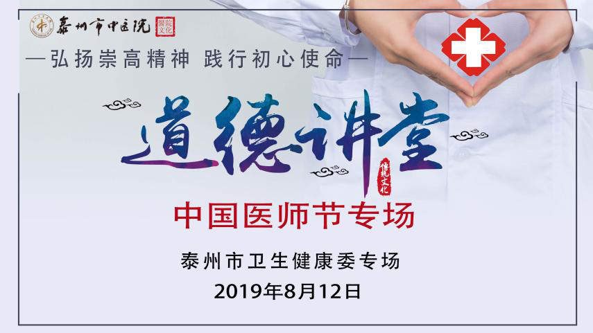 在8月19日第二個中國醫(yī)師節(jié)到來之際,為深入貫徹實施《公民道德建設(shè)實施綱要》,扎實推進社會主義核心價值體系建設(shè),引導廣大醫(yī)護人員投身道德實踐活動,不斷提升醫(yī)護人員的思想道德修養(yǎng),8月12日下午,我院成功舉辦了2019年泰州市中醫(yī)院“道德講堂”(衛(wèi)健委專場)活動。泰州市衛(wèi)健委副主任江義舟,泰州市衛(wèi)健委黨建工作處處長周榮芳,泰州市衛(wèi)健委團委書記余杏敏,泰州市中醫(yī)院黨委書記、院長王華,海陵區(qū)城中街道中山社區(qū)黨委副書記程羽,海陵區(qū)京泰路街道金東社區(qū)黨支部書記楊小梅,以及泰州市中醫(yī)院行風監(jiān)督員代表、衛(wèi)健系統(tǒng)相關(guān)單位代表、醫(yī)院領(lǐng)導班子成員、全體黨員、團員青年、入黨積極分子近300人參加了此次活動。